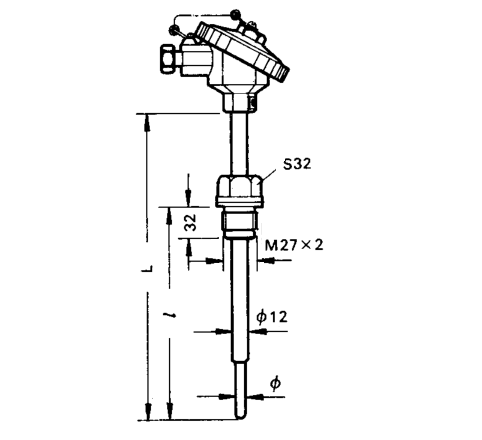 WZP-2312A(WZP-2316A、WZP-4312A、WZP-4316A)型裝配式熱電阻安裝固定裝置有固定螺紋、活動法蘭盤、固定安裝法蘭盤和帶固定螺栓錐形保護管裝置等形式。由于熱電阻傳感器采集溫度點在桿端部位置,為了保證熱傳遞采集速度以及檢測需要在傳感器的端部采用縮徑異徑測溫方式,一般桿端采用φ8mm或者φ6mm的測溫端。